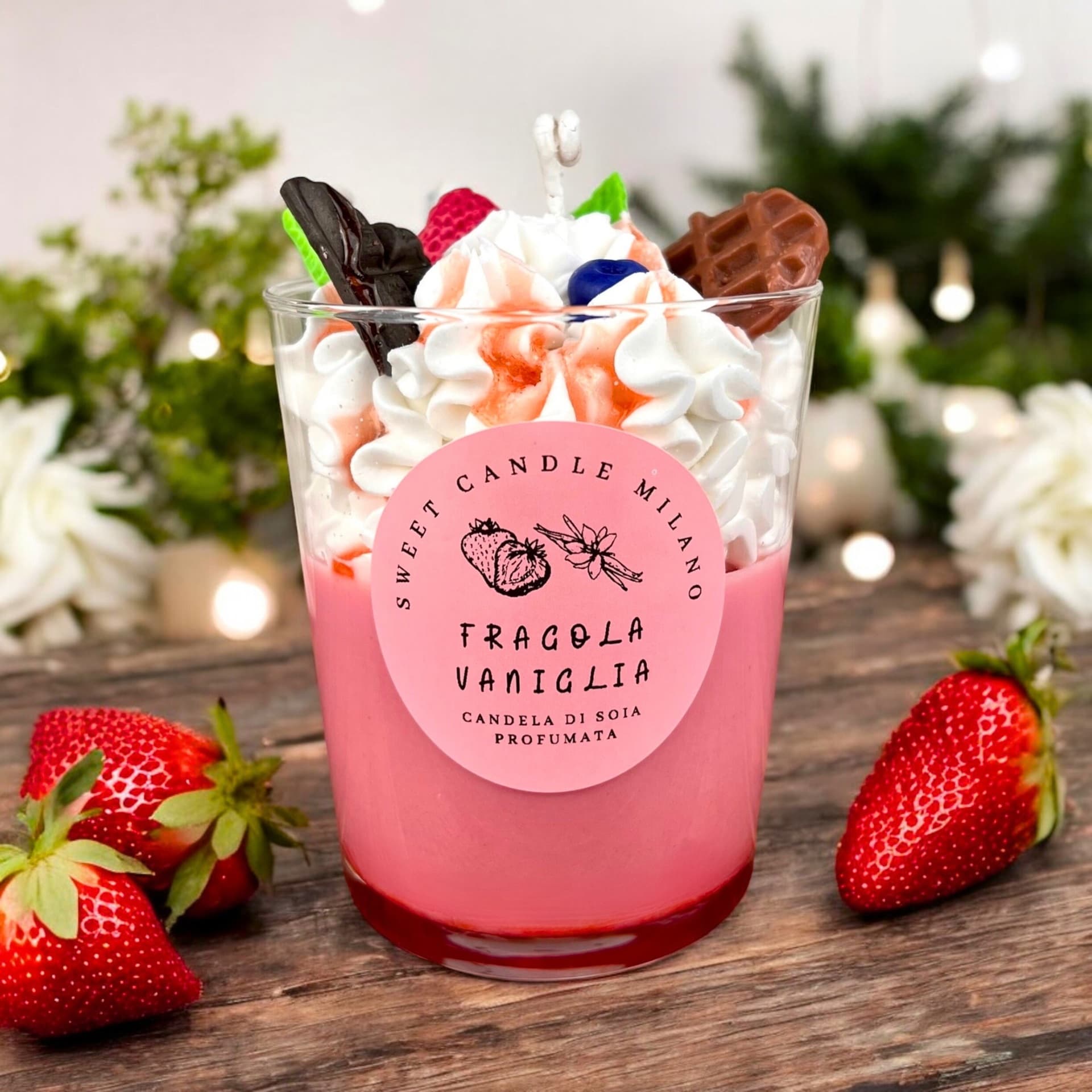 Fragola & Vaniglia è una candela di soia realizzata con ingredienti naturali e profumata con oli essenziali puri. Il suo profumo vi farà sentire come in una pasticceria! Questa candela è l'ideale per le sere d'inverno quando si vuole qualcosa di speciale per rilassarsi. Non solo profuma deliziosamente, ma la sua forma a dessert la rende anche un ottimo complemento per la vostra decorazione domestica.