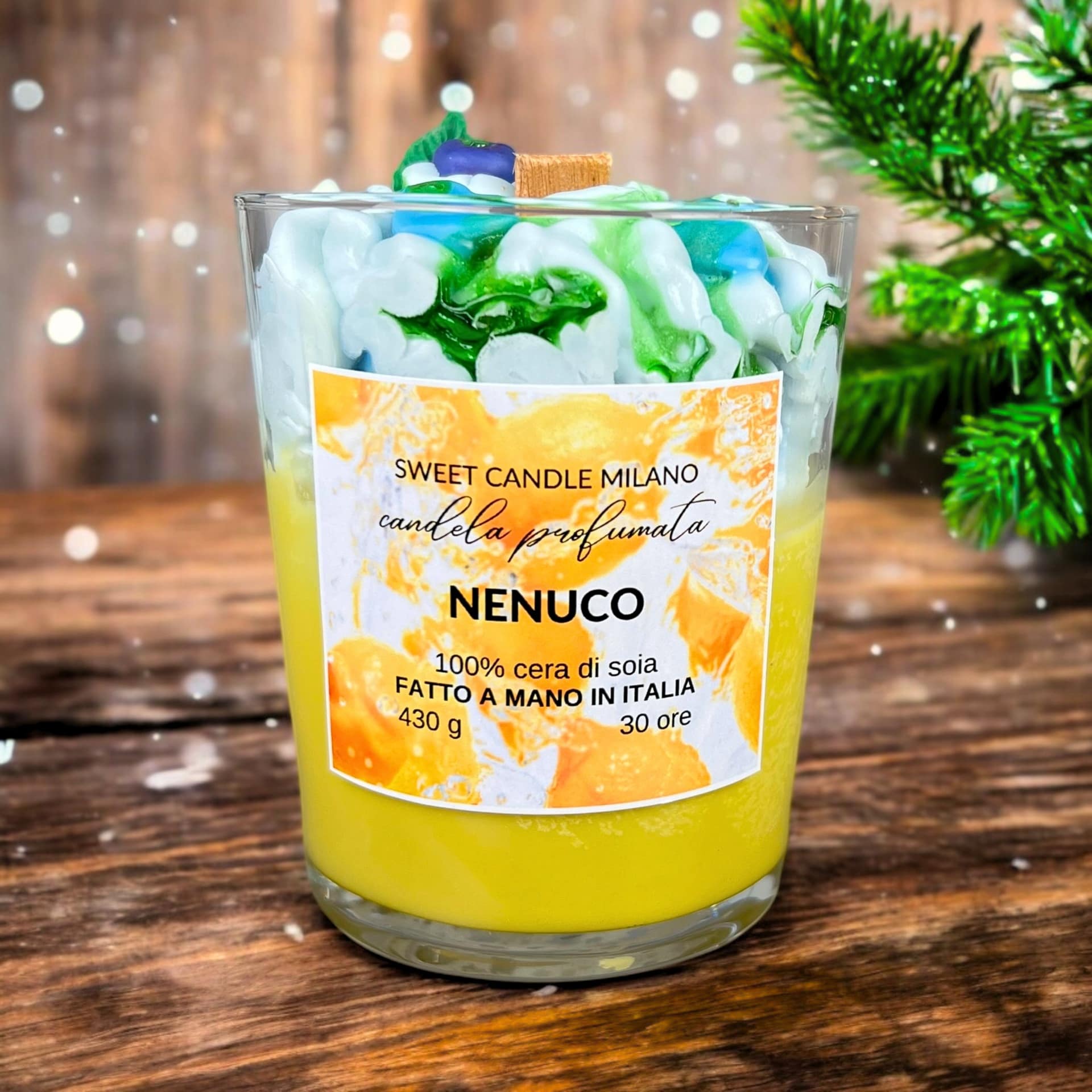 Scopri la magia della Nenuco Candle, una candela unica a forma di dessert che trasforma ogni ambiente in un luogo incantevole. Realizzata in cera di soia naturale e biodegradabile, questa candela non solo brilla con eleganza, ma è anche un'opzione eco-friendly per i tuoi momenti di relax.