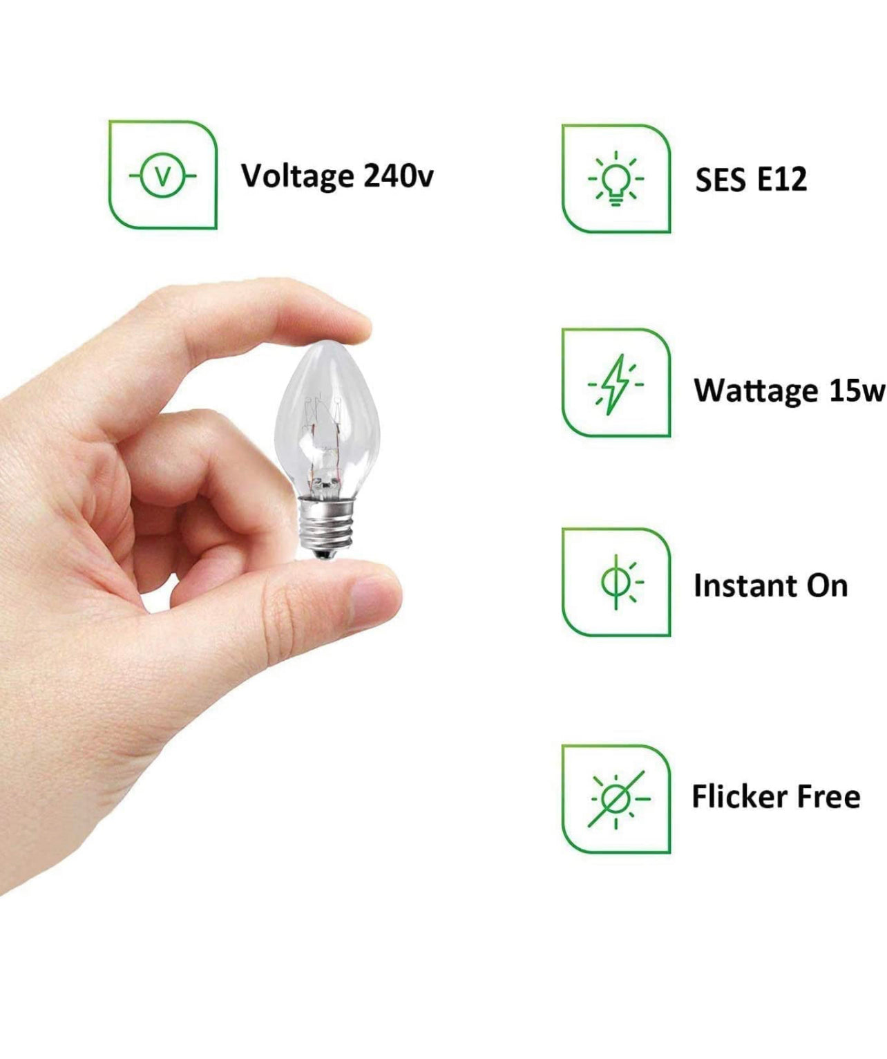 Scopri la nostra lampadina E12, un prodotto versatile e affidabile che soddisfa una vasta gamma di esigenze illuminotecniche. La sua facilità e rapidità di installazione la rendono ideale per ogni tipo di applicazione. Basta collegarla al portalampada E12 e godere della sua luminosità immediata. Questa lampadina è perfetta per una vasta gamma di dispositivi, è particolarmente adatta per lampade di sale dell'Himalaya, riscaldatori per candele, riscaldatori per cera, luci notturne e molti altri.