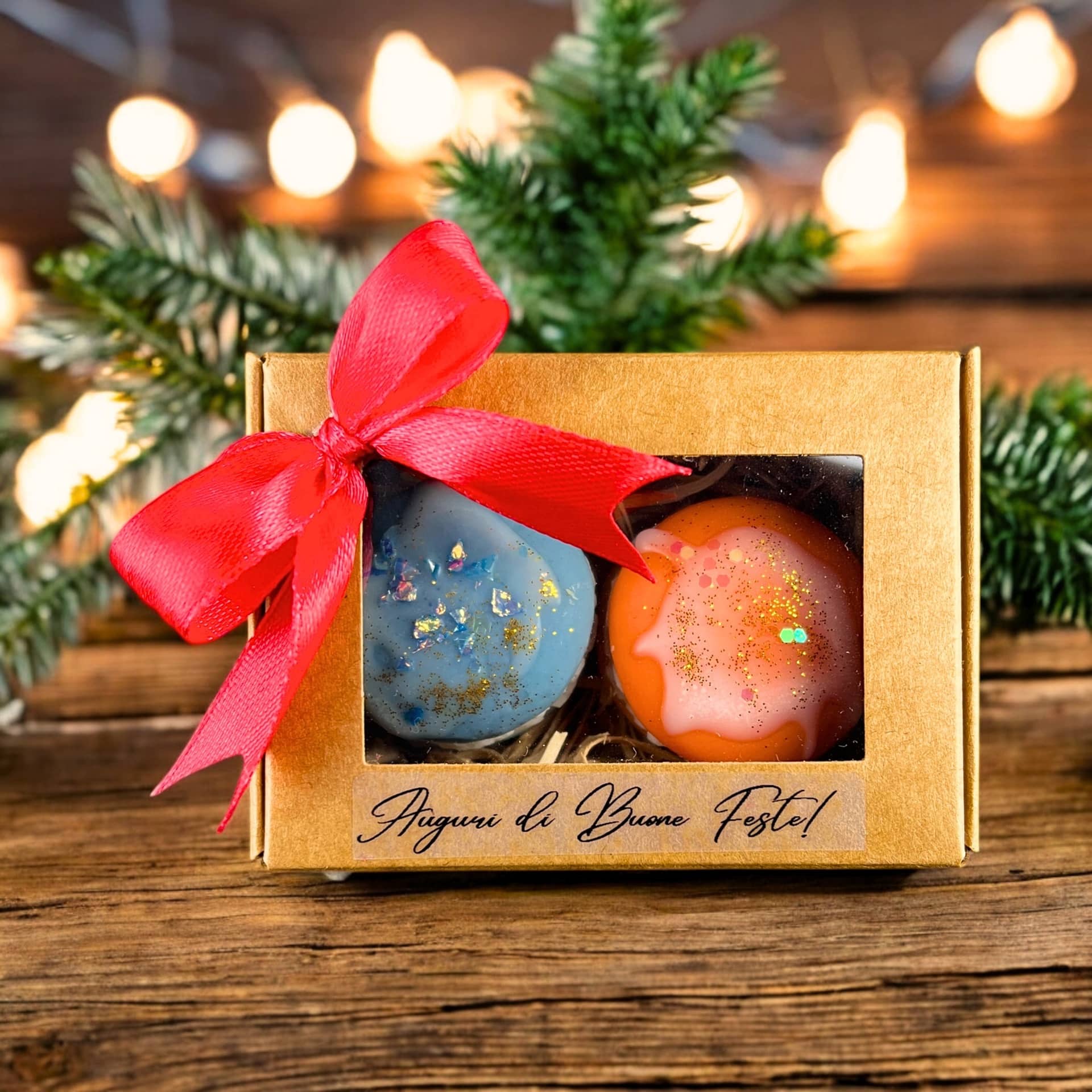 Questo elegante set comprende due macarons: un macaron blu e un macaron arancione, entrambi ricchi di fragranze avvolgenti di arancia, cannella e Christmas Candy. Realizzati in cera di soia naturale e biodegradabile, questi macarons non solo profumano il tuo ambiente, ma sono anche una scelta eco-friendly. Perfetti come pensierini, aggiungono un tocco di magia e dolcezza a ogni occasione festiva!