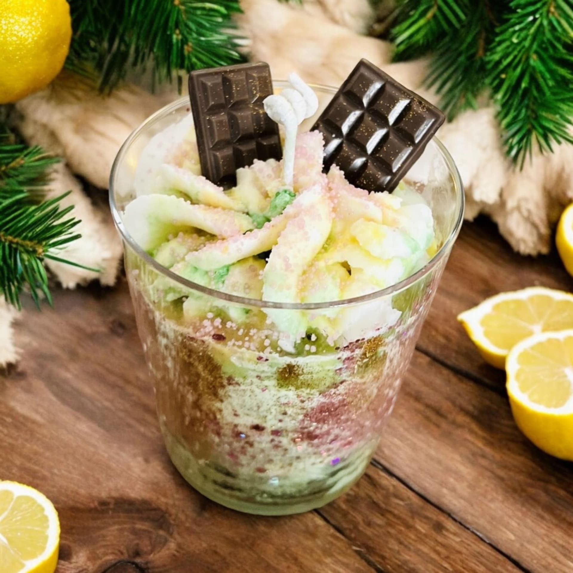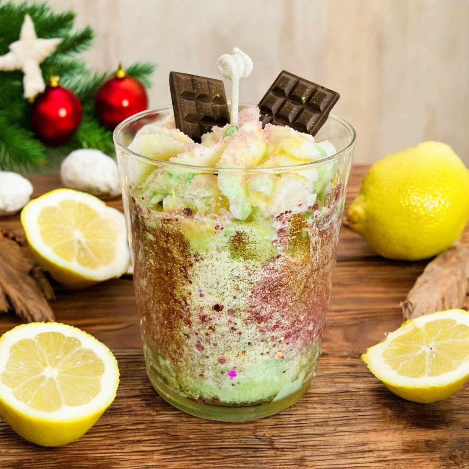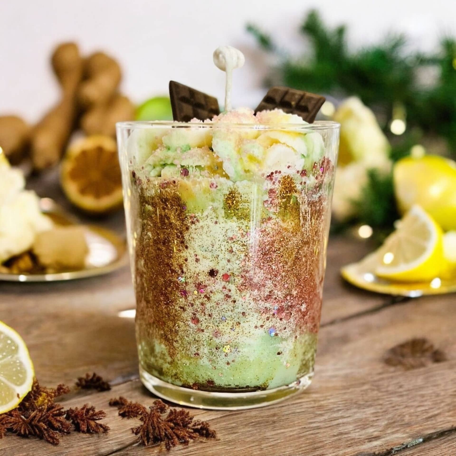 Zenzero & Limone Candela è una candela di soia realizzata con ingredienti naturali e profumata con oli essenziali puri. Delizia i tuoi sensi con la nostra eccezionale candela a forma di dessert, un'opera profumata che unisce le fragranze distintive di: